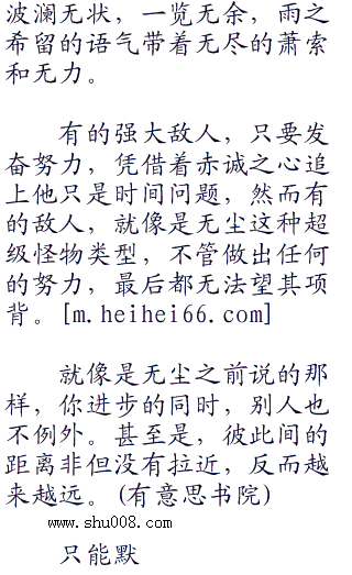 瞳仁内像是万载寒冰,没有丝毫人类的感情,唯独剩下与世隔绝的冷漠和孤高,雨之希留的实力对别人来说或许是梦魇般的存在,想要凭借撼动无尘,却是引火**。