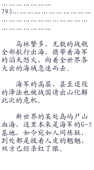 最近这段时间,黑胡子整天乐此不彼的猎杀者全世界的各处海贼,海军本部对此也睁一只眼闭一只眼,他的行为也算是进化世界和平,海军也乐意如此。