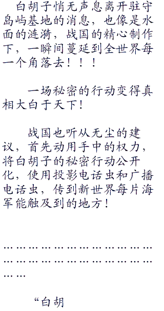 巨大的海贼船秘密潜行,一路畅行无阻,遇到的海军也是抬手即灭,海军的高层奔赴到世界各地执行任务,这一路他们都没有遇到什么阻拦,如鱼得水般顺畅!