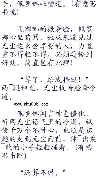 察觉双肩传来的大力,无尘不由的无语说道,这股强悍的力道之下,他的身体非但没有放松愉悦的感觉,反正越来越难过!