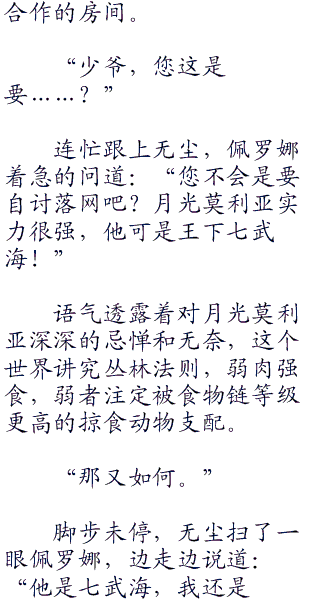佩罗娜心里不禁火冒三丈,无尘的要求实在过分,生活作风一点也不像是海军大将!
