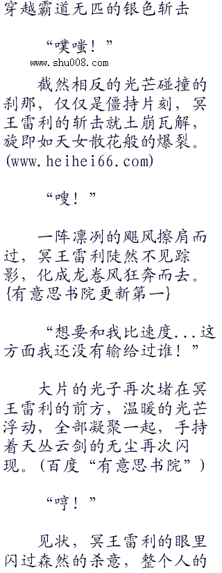 强而有力的手臂甩出,一道银色的光芒扬长而去,凛冽的锋芒将地面拉出长长的沟~壑,锁定的方向正是无尘。