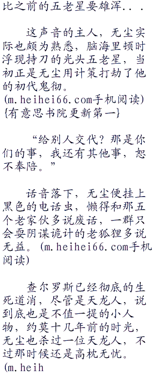 对面用电话虫联系无尘的人,从某种程度上来说更像是地痞流氓,也唯有对待地痞和流氓的时候,无尘才会这么轻浮!