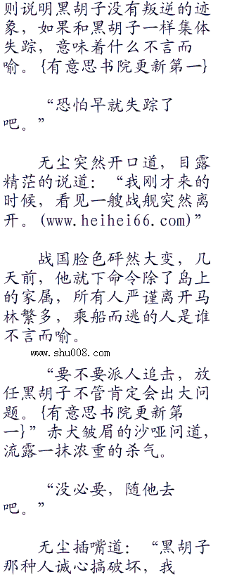 “话说回来,黑胡子那个男人呢?”眼里划过亮光,无尘突然的问道。