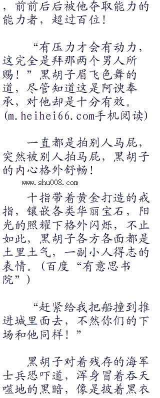 一位被擒住的海军惨叫道,整个人的五脏六腑都要被黑暗大手吸食,身体逐渐的干瘪,由活生生的一个人变成一具蜡黄的枯骨。