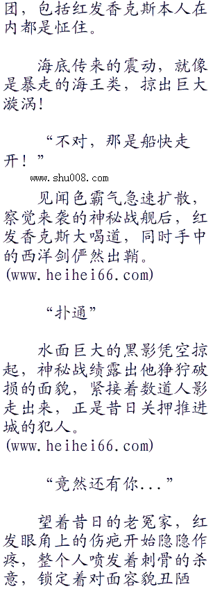 耶稣布和贝克曼对视一眼,异口同声的叫道,红发香克斯却是直接无视他们,眼睛瞪大的盯着海底深处。