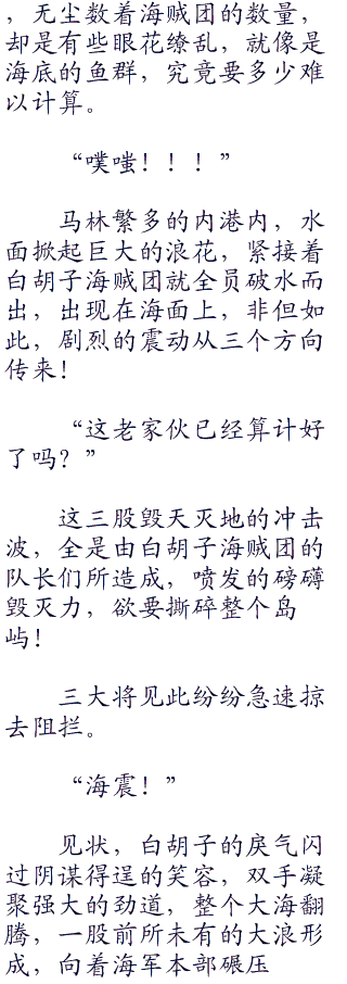 红发海贼团的副船长贝克曼大声说道,旋即夺过耶稣布手中的望远镜,径直的向着前方的海域掠去。