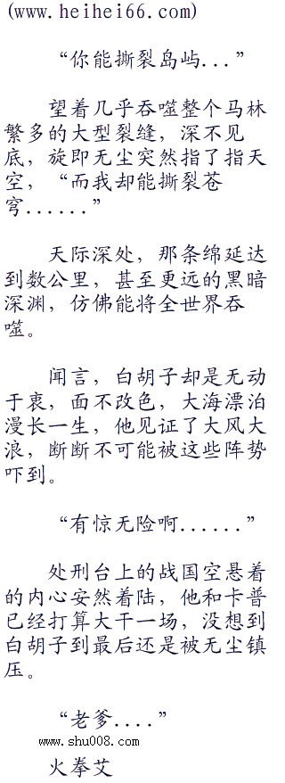 悠然回头,无尘双眼喷这更加凛冽的寒光,以比白胡子更凶残的力道,全力轰出,甚至由于力度过大的原因,流动的空气都被绞碎。