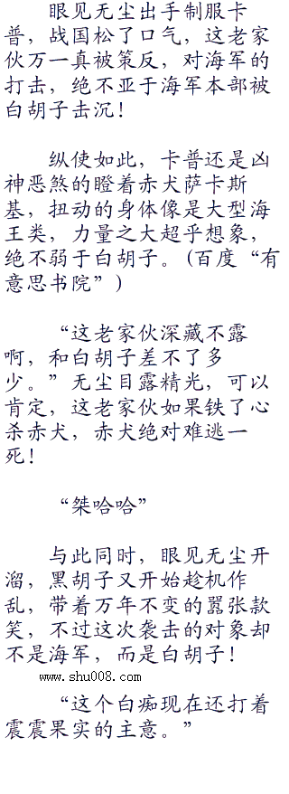 卡普渴望艾斯成为人中龙凤,变成海军的顶梁柱,可惜事与愿违,火拳艾斯误入歧途,最终踏入企图,到最会还是误入歧途。