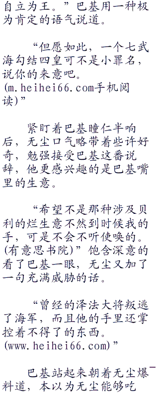 巴基头摇的像是拨浪鼓,故作一番思考之后说道:“我是来谈生意的!”