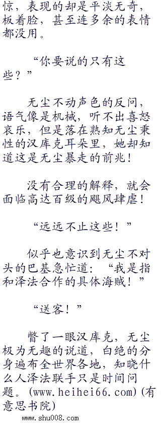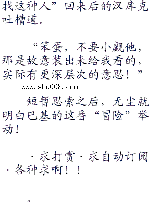 汉库克不解道,她的印象里,无尘可不认识这种小人物,能和无尘接触的人物,实力最次的也达到中将的级别。