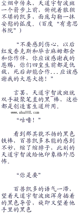 天道宇智波斑的视线落到泽法身上打转,轻声道:“你也活了大半生,现在去死,也应该感到安逸解脱才是...”