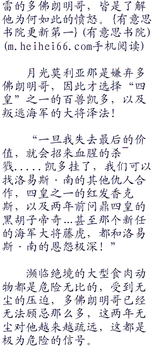 “反正他活不了几天,凯撒前几天通知过我,冥王不久后就会问世,那时候多佛朗明哥就没有了利用价值一个野心勃勃,又没有利用价值的走狗,最后的下场只有被抛弃!”双眼射出阴桀,无尘杀机凛然的说道。