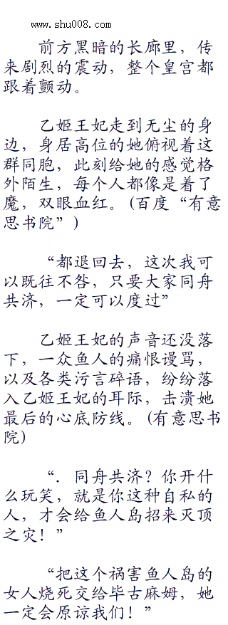 乙姬王妃难过道,精致红润的面庞失去光泽,黯然神伤复杂的望着下方歇斯底里的鱼人,她突然感觉昔日所做的一切都是自欺欺人。