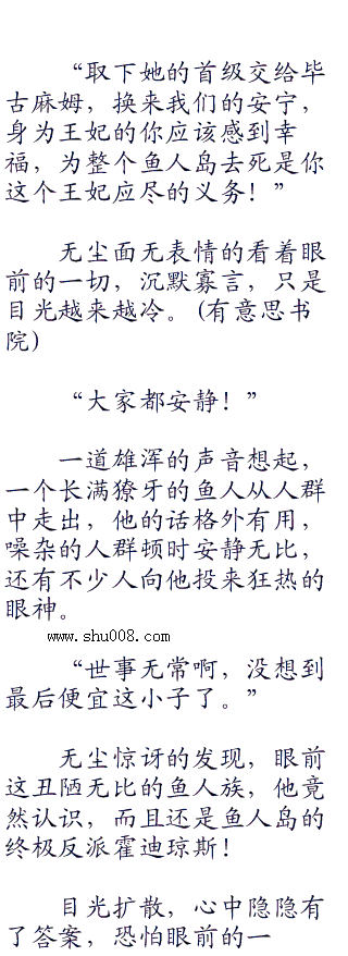闻言,乙姬王妃俏脸茫然,自问对鱼人岛奉献一生,没料到这些往日忠诚的子民,现在争先恐后的要处死她