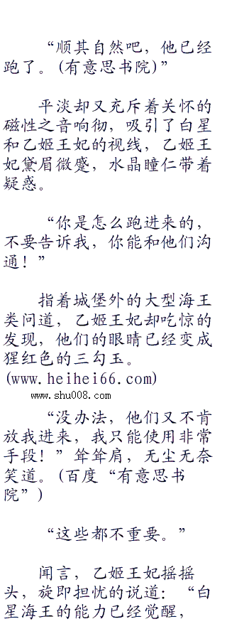 乙姬王妃摆动身体,掠到白星面庞,温柔的抹掉眼角的泪珠,旋即透过窗户望着四周游荡的大型海王类,眼角掠过精茫。