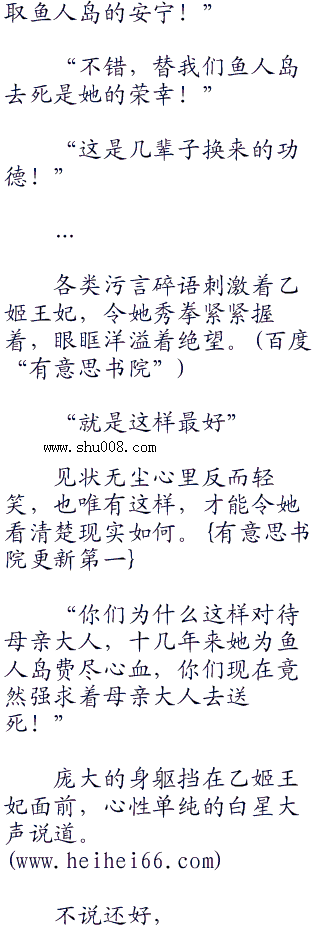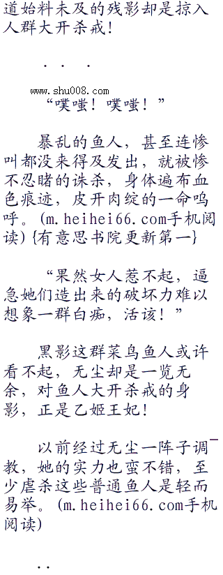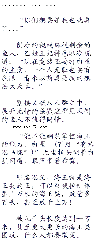 眼见乙姬王妃如此执著鱼人岛,无尘不由感到无语那些暴乱的鱼人族都说将她的脑袋砍掉送给毕古麻姆,以此来熄灭毕古麻姆的怒火,没料到这个女人还是如此顽固不化。