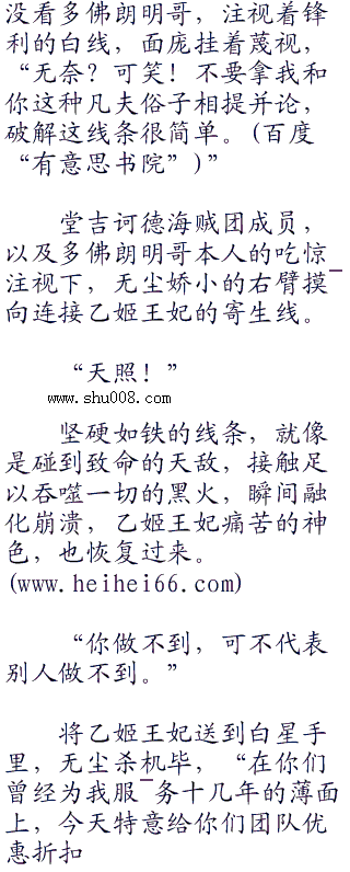 眼眶盯准乙姬王妃毫无防备的背后,多佛朗明哥眼底闪过狠辣之色,还有阴暗的恶趣味笑容,旋即手中弹出数十条透明的线条,连接乙姬王妃的四肢。