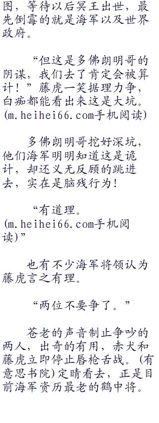 “不用想也知道这是阴谋,好端端的谁会把冥王设计图这种弥足珍贵的东西叫出来?海军隔岸观火即可,淡定看争夺冥王设计图的海贼自相残杀就行老夫坚决不同意调集全部力量进攻德雷斯罗萨!”