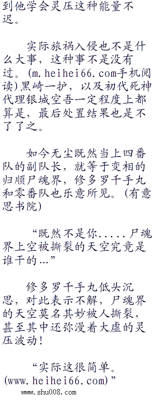 “逮捕你谈不上,你顶多算是来历不明,稍微有点实力的人罢了有烈监视你。而且还能利用你的实力为尸魂界服~务最好不过。”