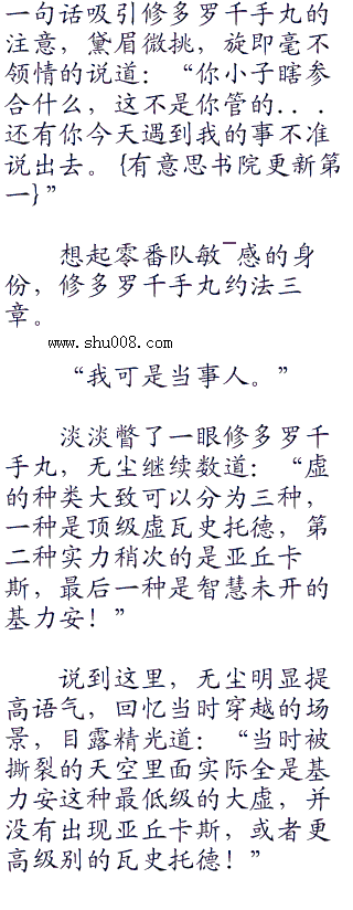 主动和无尘来开一段距离,修多罗千手丸说道:“你刚来到尸魂界的时候,引起的巨大骚乱究竟是何人所为,不要说是觉醒斩魄刀所为,糊弄山本他们可以,对我却没用。”