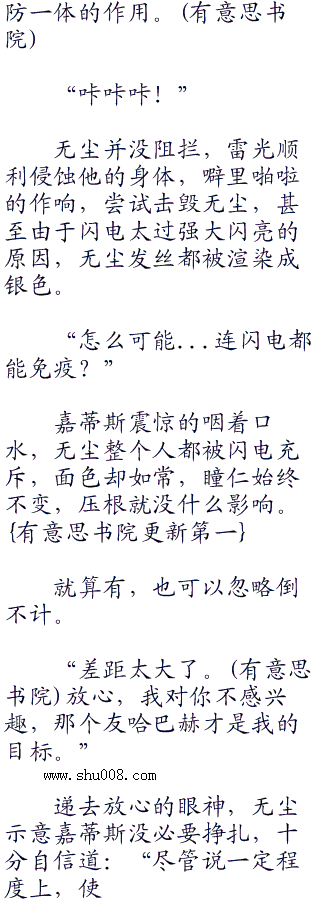 像是闪电人,四肢百骸都遍布雷电,全部掠向无尘抓她的手,尝试以此方式逼退无尘。
