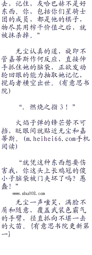 嘉蒂斯奋力挣扎,她的右臂俨然被无尘制服,同时大声警告道:“靠我这么近,找死!”