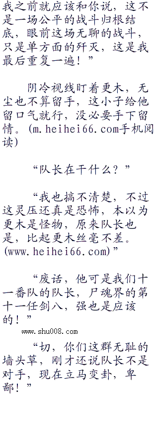 眼神阴郁的打量化为平地,被狭长裂缝撕碎吞噬的十一番队,无尘老脸一阵发绿,旋即没好气的说道:“给我住手,我不想杀了你…杀了你小子太不值,至少把你卖给涅茧利那个变态做研究,说不定还可以换取一笔援助重建十一番队!”