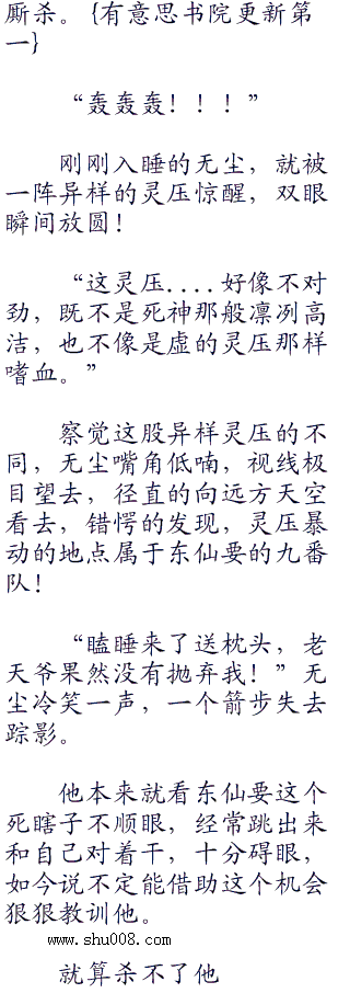 冥冥之中,卯之花烈听到无尘的阴笑声,还有那黑暗的表情,当下就是浑身不自在。