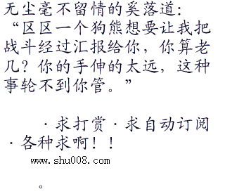 眼角的余光不着痕迹扫了一眼卯之花烈,无尘暗自咂咂嘴,起初十分自恋臭屁的以为卯之花烈是来勾~引自己,谁料只是简单帮无尘擦擦背,除此之外再无下文。