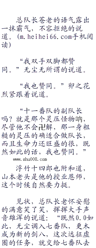 闻言,无尘看向了卯之花烈,估计这是她和总队长商量的后果。