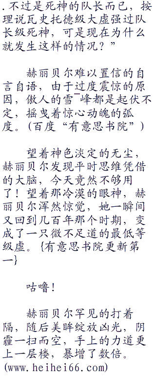 提起骨质的锋利大剑,赫丽贝尔十分顽固的说道:“死神和虚是互相为敌的天敌,我来杀你很正常!也没有人指使我,要明白我是瓦史托德级的顶级虚,虚圈能指使我的人物不存在!”