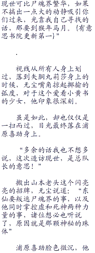 目光从这些死神身上一一拂过,无尘顿时明白几人所在的番队,还模糊记得,戍守现世的任务貌似就是由十番队负责。