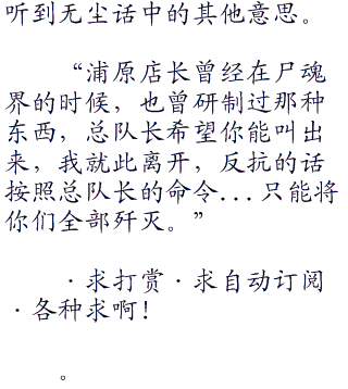 “您这是什么意思,无尘队长。”一众十番队的队员满头雾水,表示不明白。