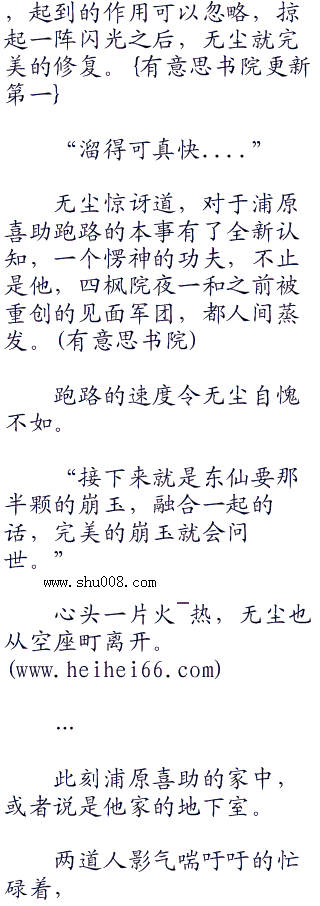 一阵漩涡开始缓慢吞噬无尘和四枫院夜一的身体,下半生已经逐渐消失。