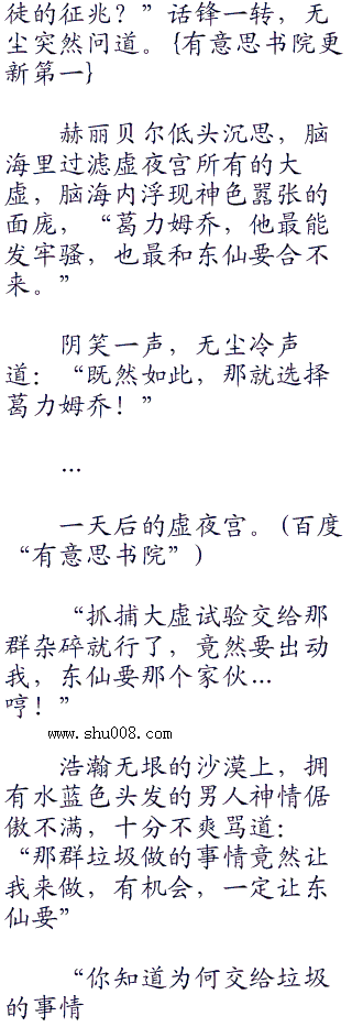 赫丽贝尔归顺无尘仅仅三天,侧面说明,最多三天,她就打听到崩玉所在,如此之短的功夫实在不科学。