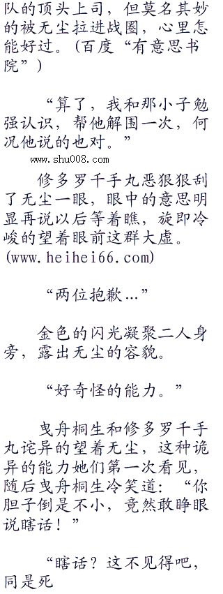两人差点郁闷吐血,她们来虚圈也是一个例外,察觉到异样的灵压波动才降临于此,谁料刚来无尘就泼脏水。