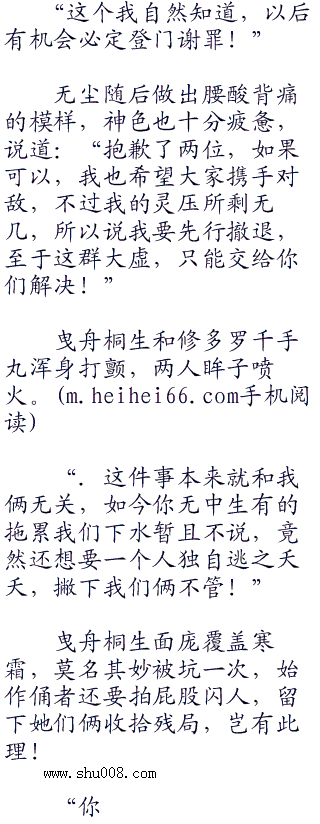闻言,修多罗千手丸和曳舟桐生面面相觑,大为恼火,纷纷凶残瞪着无尘,“小子,你鬼扯什么,注意你的措辞!”
