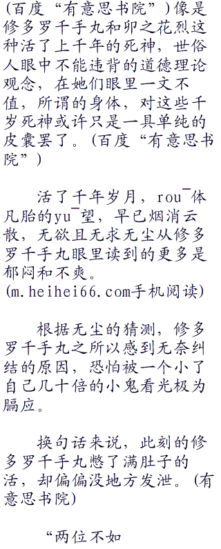 眼见修多罗千手丸和曳舟桐生眨眼间就遮挡住隐秘部~位,无尘不是滋味的咂咂嘴,心里暗叹一声可惜。