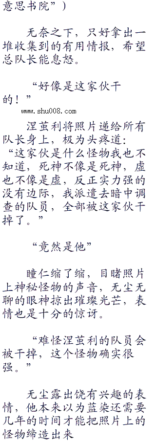 无尘露出一抹笑容后释然,旋即大声道:“乱菊,赶快把我的队长羽织拿来,队长会议马上就要迟到了!”