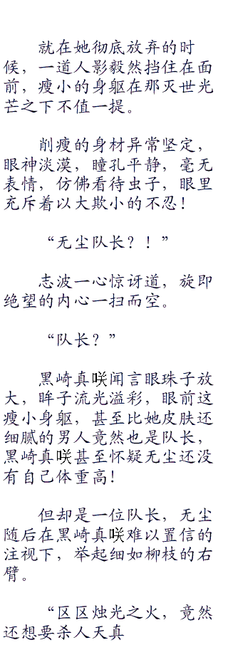暗处的无尘,眼冒精光的看着黑崎真咲。从灵压的波动,以及娴熟操控灭却师的动作招式来看,绝对不会比邦比爱塔以及嘉蒂斯弱。