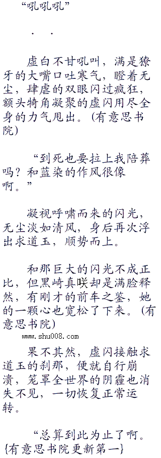 视线聚焦不断膨胀的虚闪上,无尘嘴角掠起一抹嗜