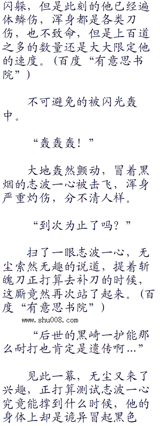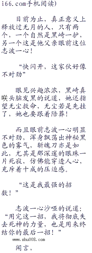 眼见无尘如此狂妄,志波一心当下便凶光大方,黑色的瞳仁内,杀气近乎实质化,力道比之前增强数倍!