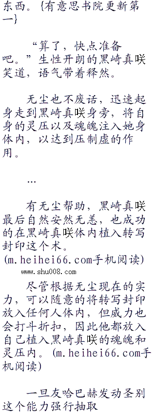 看着异常难受的黑崎真咲,无尘也知道不是时候拖下去了,说道:“只要注入与大虚截然相反的力量即可。”