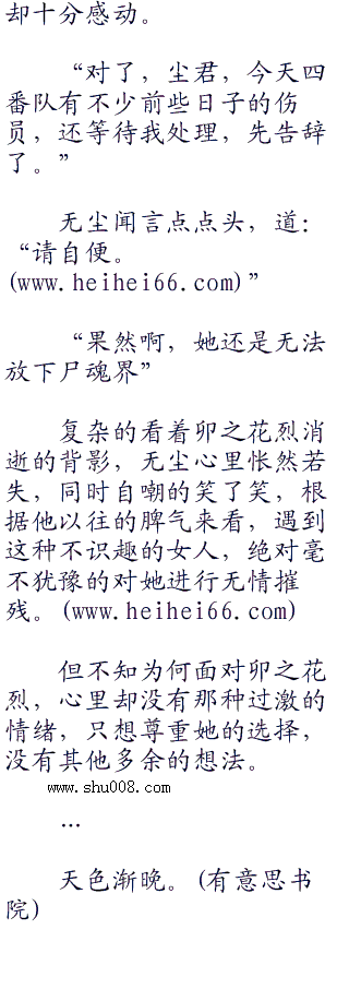 望着卯之花烈的面庞,无尘突然有些于心不忍,他只不过是编来的鬼话,卯之花烈竟然选择深信不疑,无尘感动的同时也受之有愧。