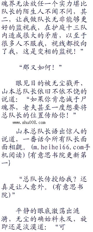 “的确是我出手重创了他,为了和我战斗,他丧失了全部死神之力,不过,他虚化这是不争的事实。首发”