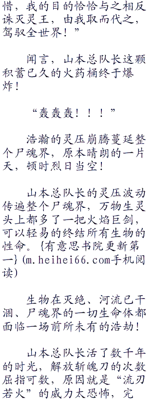 山本总队长眼眶欲裂,身体内喷发高密度的炽热灵压,尽管他没有任何的举动,身后的大片虚空竟然诡异燃烧,地面也变成黑炭!