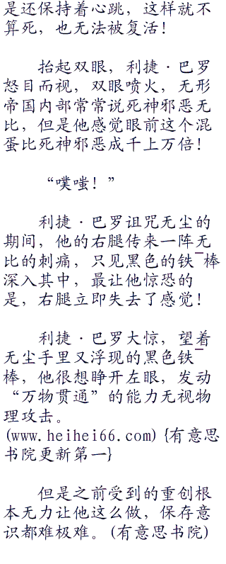 利捷·巴罗表面嫉恶如仇的瞪着无尘吗,心里却是卷起惊涛骇浪,纵使掩饰的极为