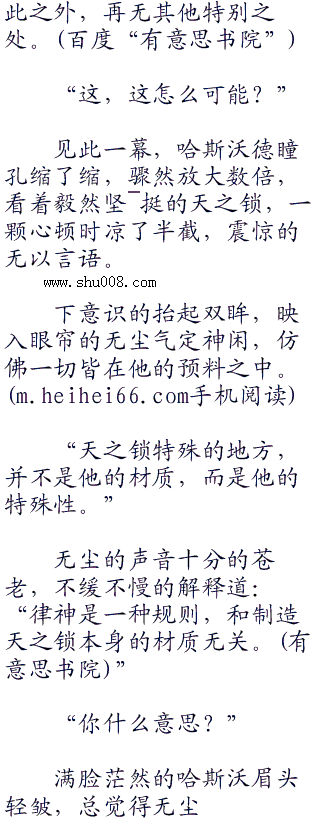 闻言,哈斯沃德嘴角重复一遍,自问了解各类死神的?d解,以及武器鬼道,却发现这天之锁从来没有见过。