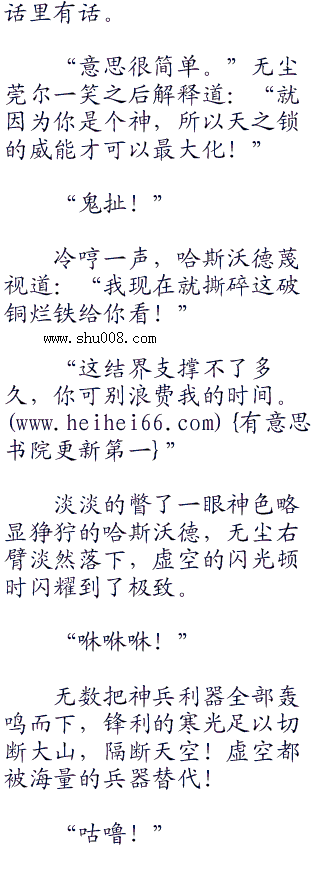 “哼!虽然吃惊你还有这样的底牌,但不管是什么招数对我都不起作用。”哈斯沃德的自信死灰复燃,傲然道:“神的面前,一切都是不值一提的!”